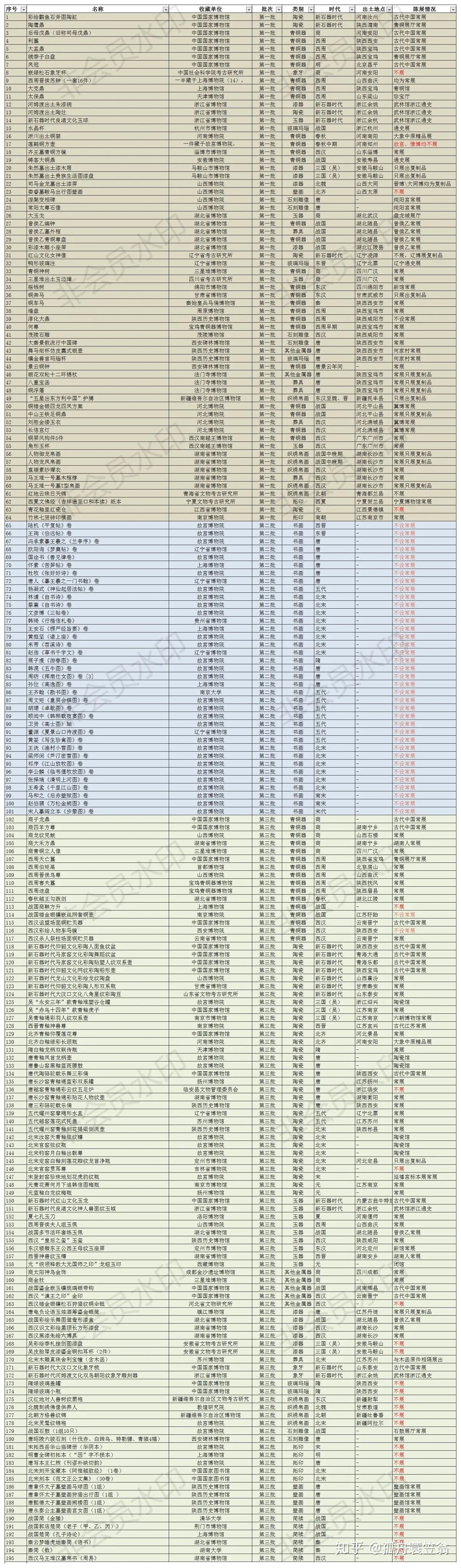 序號 名稱 時代 級別 現(xiàn)藏 批次 年度