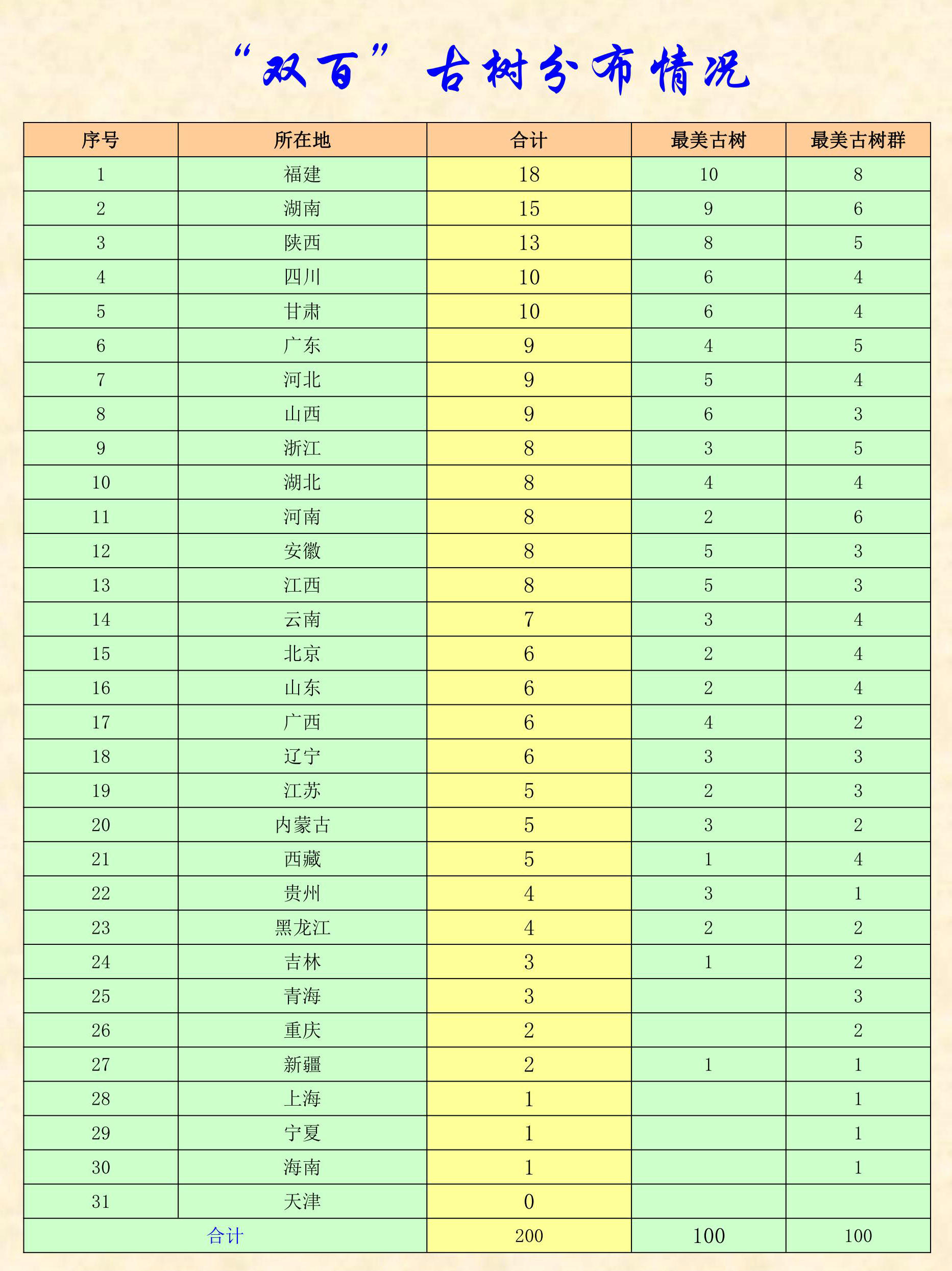 “雙百”古樹(shù)名單揭曉