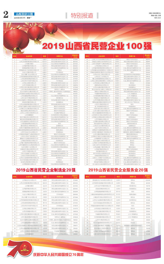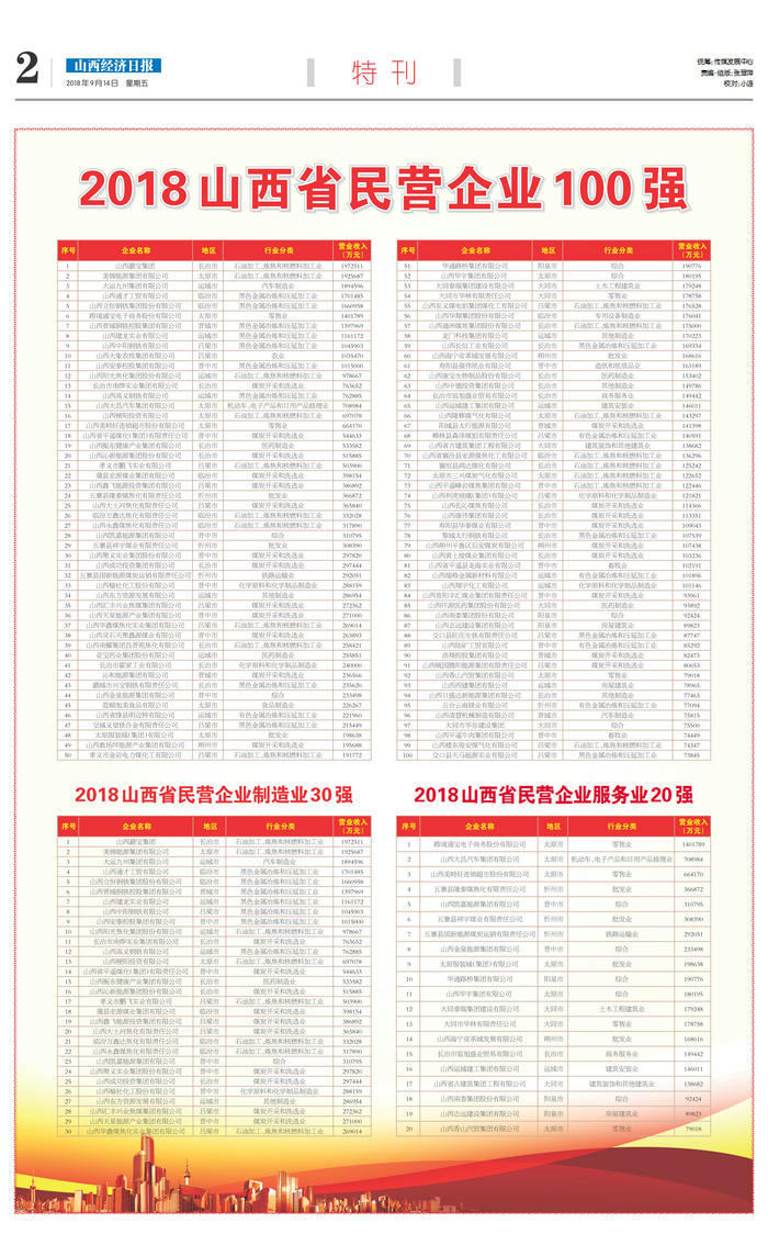 2023山西省民營(yíng)企業(yè)100強(qiáng)榜單