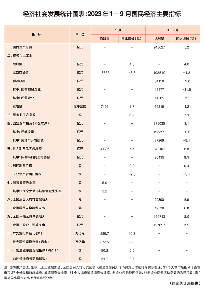 2023年1—9月國(guó)民經(jīng)濟(jì)主要指標(biāo)