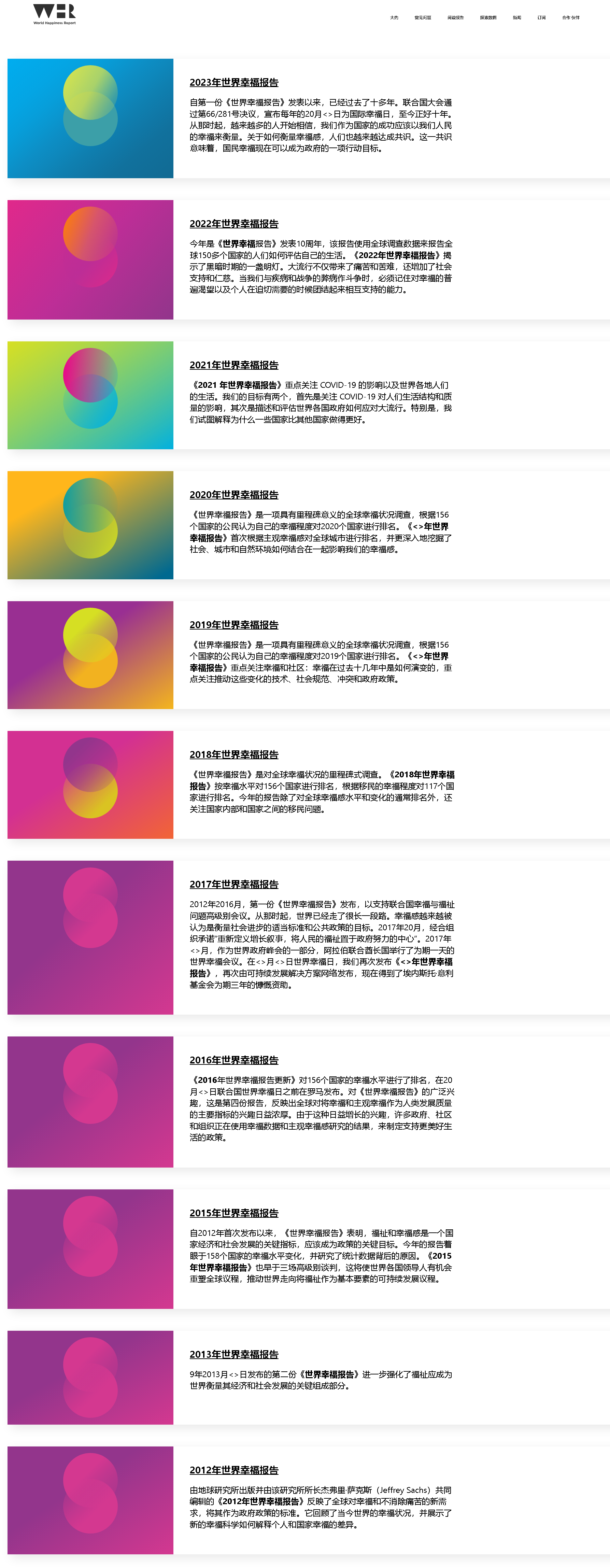 2012年2016月,第一份《世界幸福報告》發(fā)布,以支持聯(lián)合國幸福與福祉問題高級別會議。從那時起,世界已經(jīng)走了很長一段路。幸福感越來越被認(rèn)為是衡量社會進(jìn)步的適當(dāng)標(biāo)準(zhǔn)和公共政策的目標(biāo)。2017年20月,經(jīng)合組織承諾“重新定義增長敘事,將人民的福祉置于政府努力的中心”。2017年<>月,作為世界政府峰會的一部分,阿拉伯聯(lián)合酋長國舉行了為期一天的世界幸福會議。在<>月<>日世界幸福日,我們再次發(fā)布《<>年世界幸福報告》,再次由可持續(xù)發(fā)展解決方案網(wǎng)絡(luò)發(fā)布,現(xiàn)在得到了埃內(nèi)斯托·意利基金會為期三年的慷慨資助。