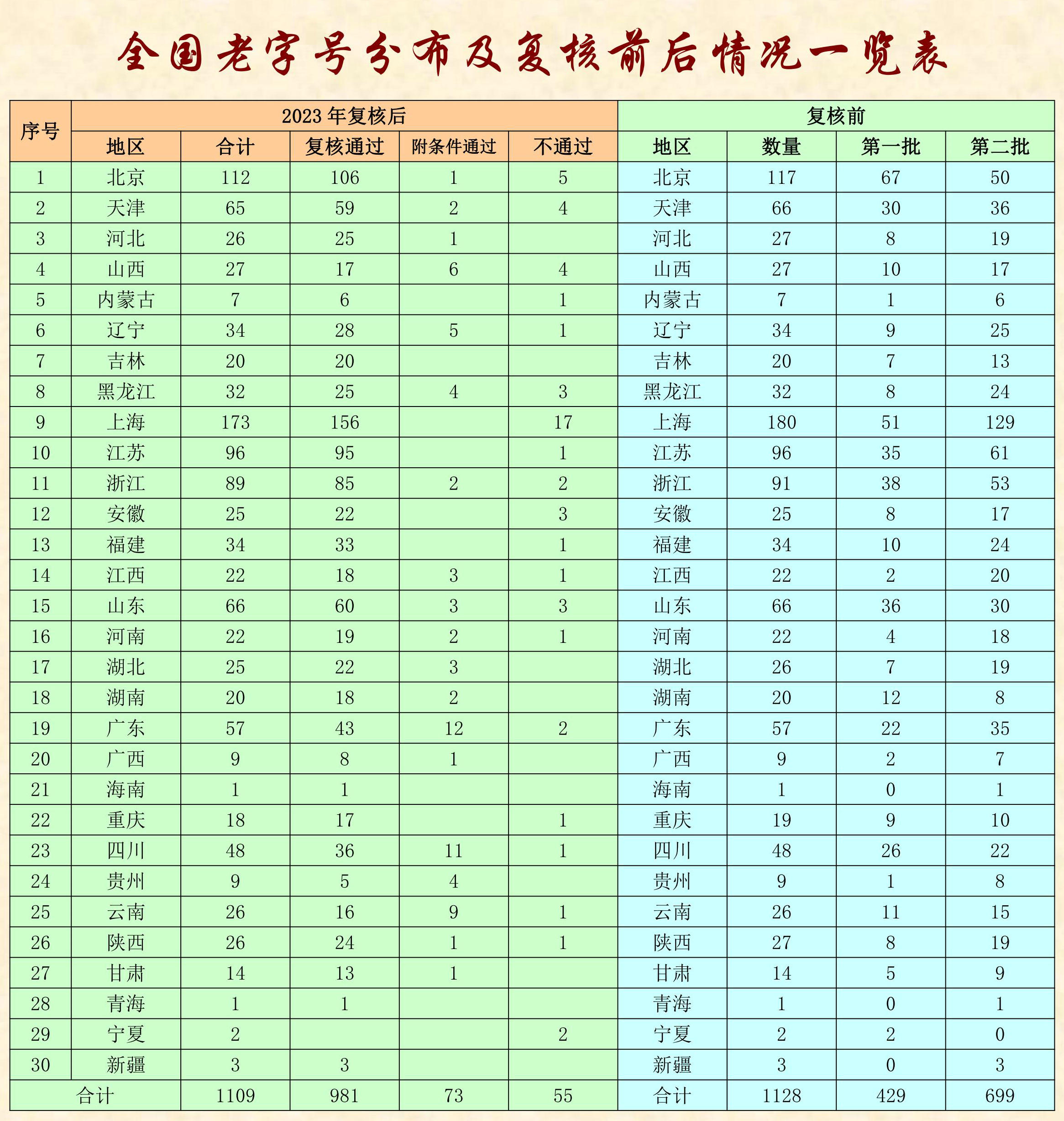 【行業(yè)資料】2023中華老字號(hào)復(fù)核結(jié)果匯總表