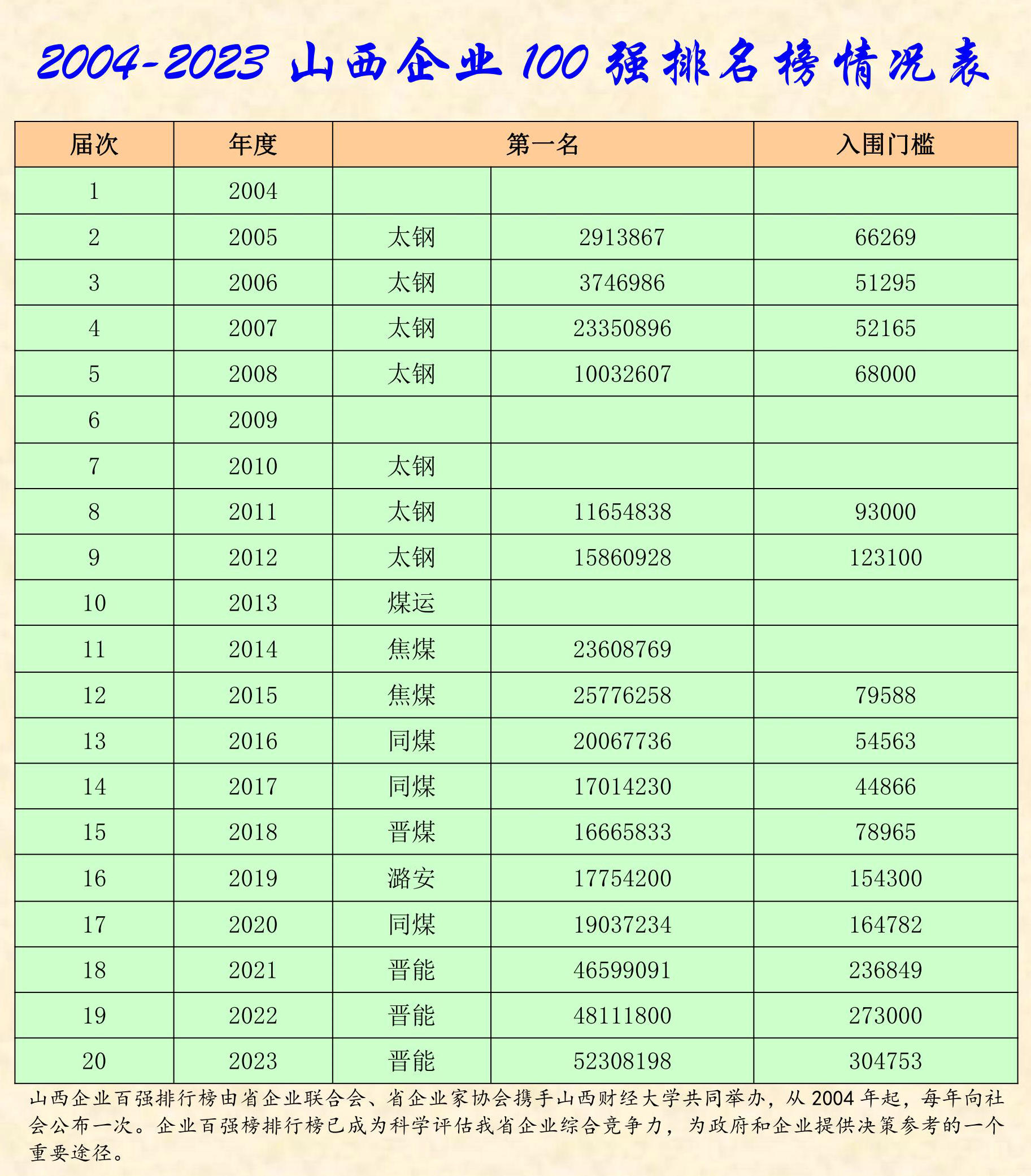 2023年山西企業(yè)100強排行榜