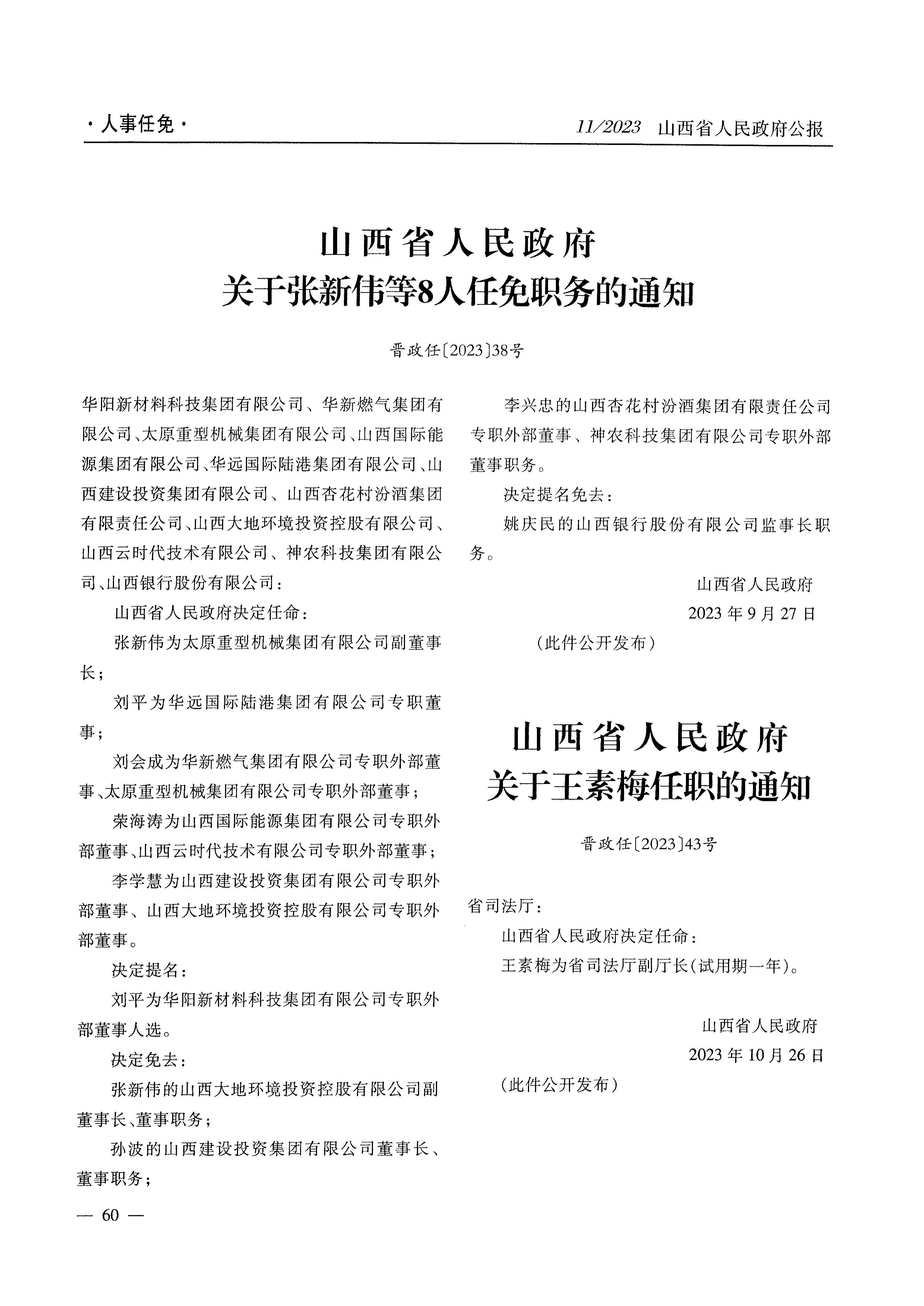 山西省人民政府關(guān)于張新偉等8人任免職務(wù)的通知