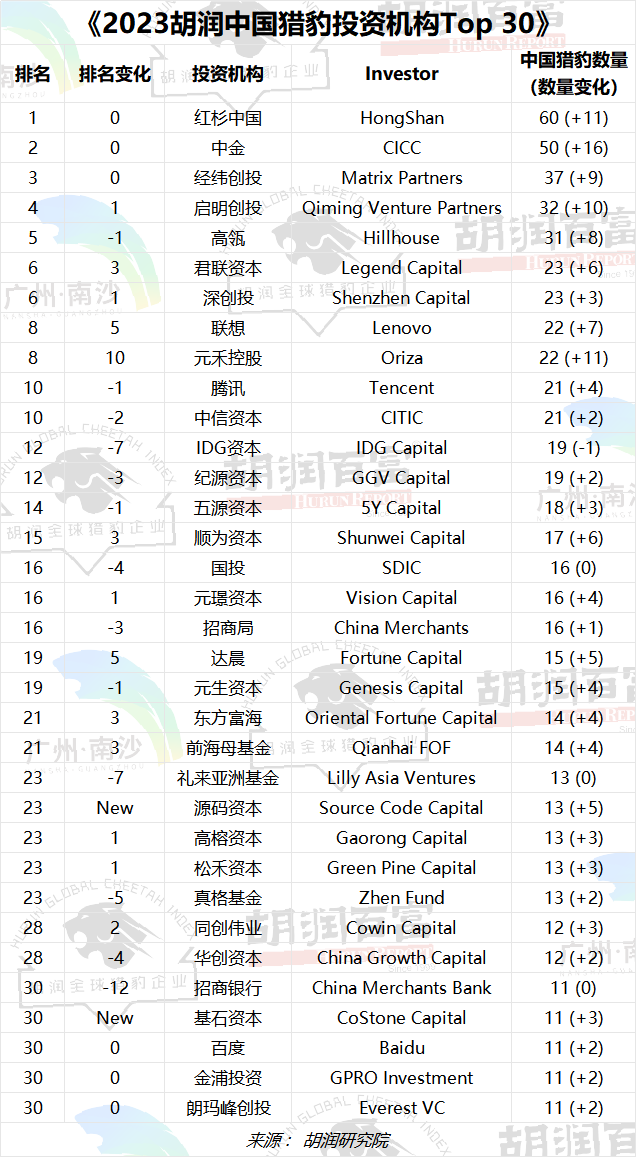 《2023胡潤中國獵豹投資機(jī)構(gòu)Top 30》