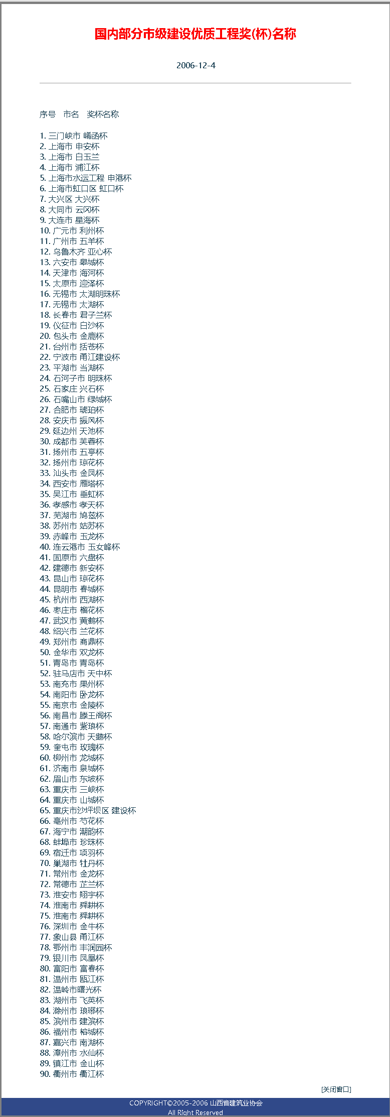 這是十七年前,在山西省建筑業(yè)協(xié)會管理網(wǎng)站時,收集的全國各地建筑業(yè)評獎名稱,對于了解我們這個行業(yè)和社會的重視程度,管中窺豹,可見一斑。做企業(yè),首先要知道和懂得瞄準(zhǔn)戰(zhàn)略目標(biāo),有的放矢,正中靶心。