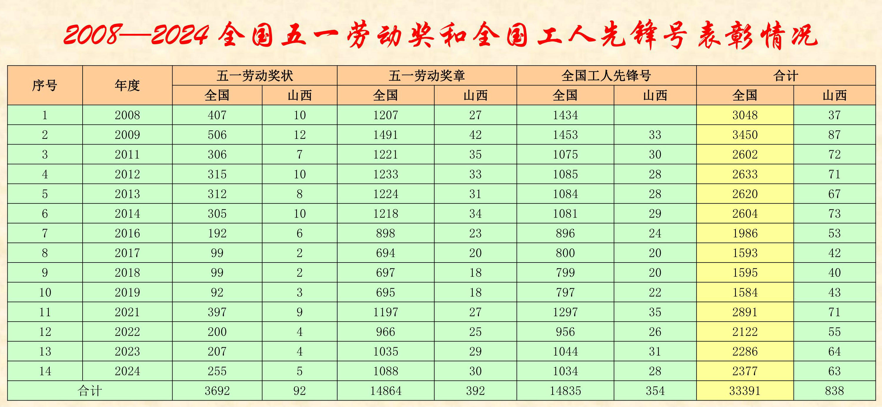 2023-2024年山西省榮獲全國(guó)五一勞動(dòng)獎(jiǎng)和全國(guó)工人先鋒號(hào)名單