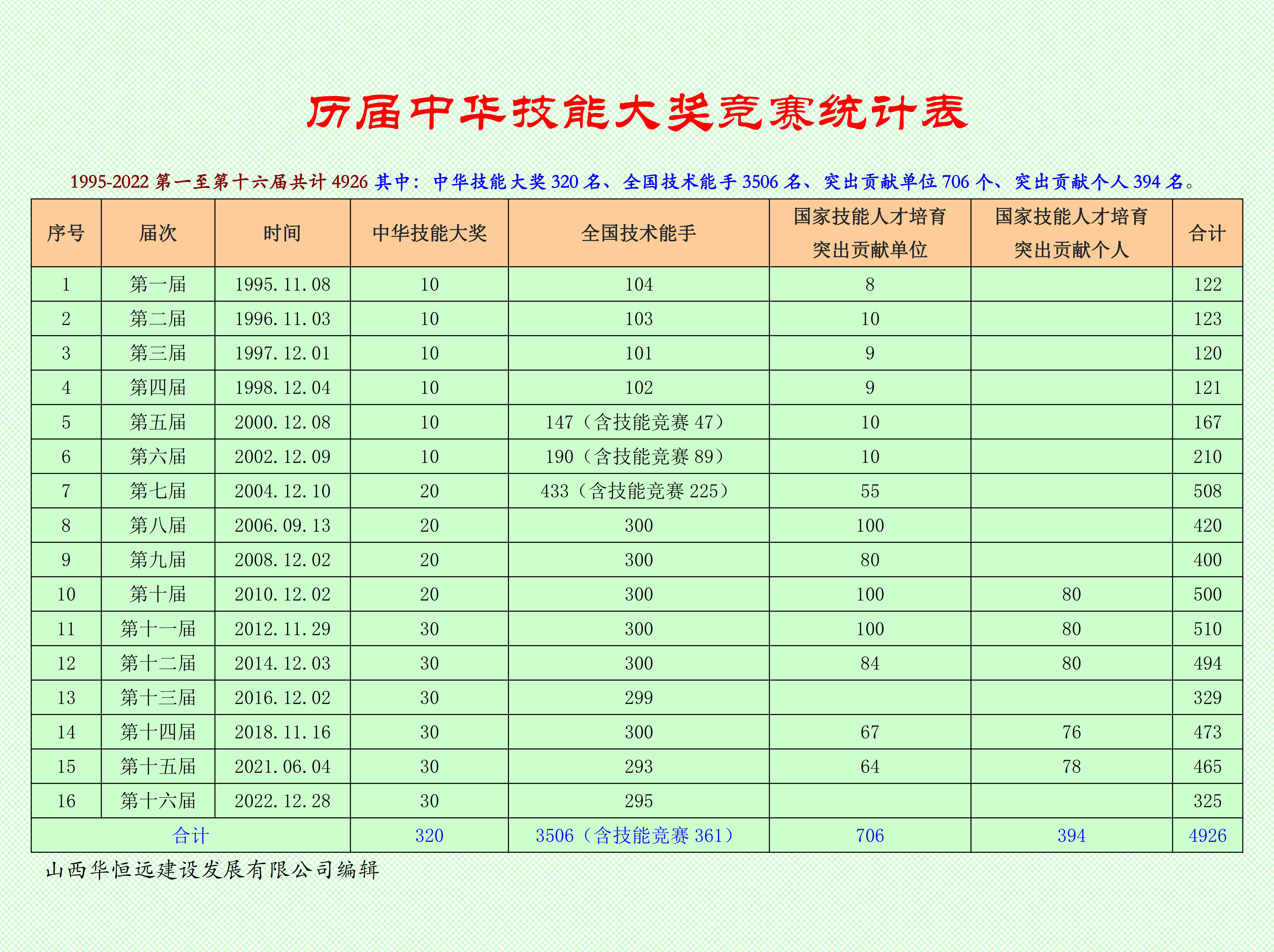 1995-2022中華技能大獎和全國技術(shù)能手名單
