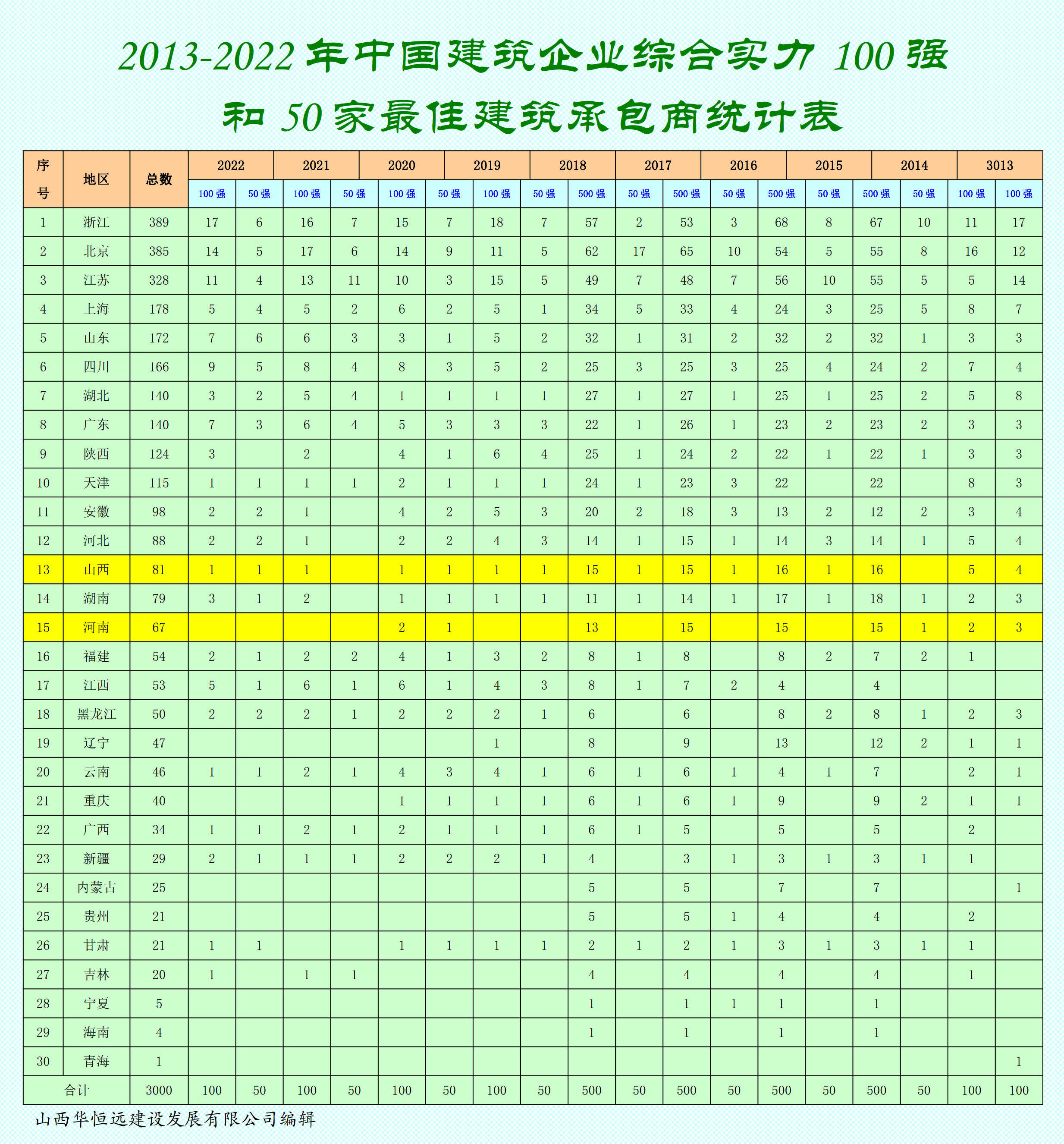 2013-2022年中國建筑企業(yè)綜合實力100強和50家最佳建筑承包商排行榜?