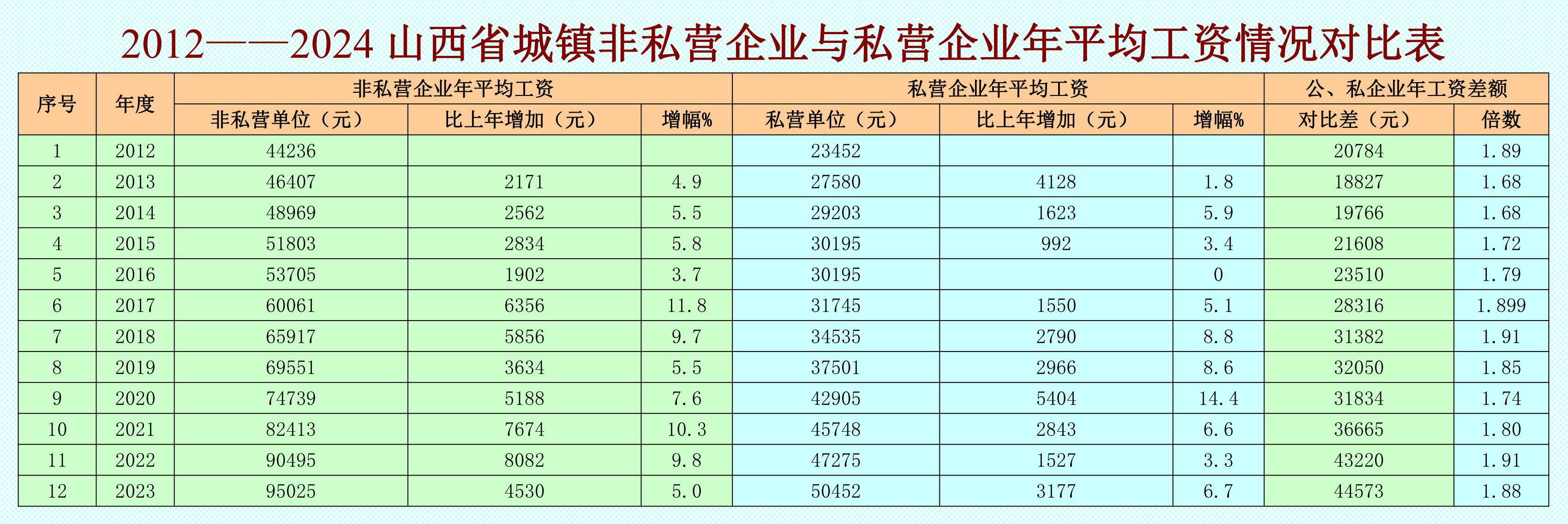 2023年山西省城鎮(zhèn)非私營單位就業(yè)人員年平均工資95025元