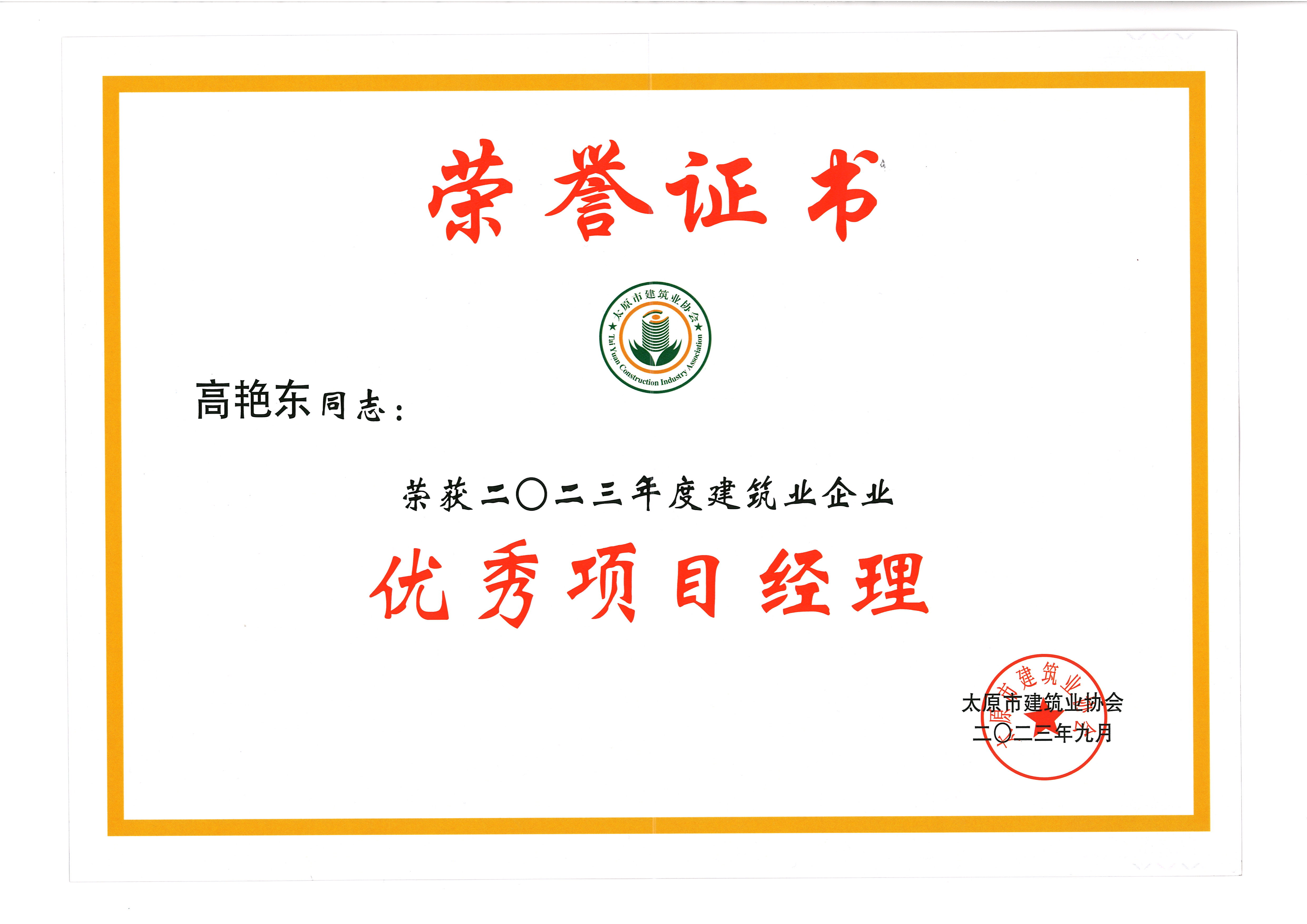 祝賀高艷東、張悅獲得優(yōu)秀項目經(jīng)理