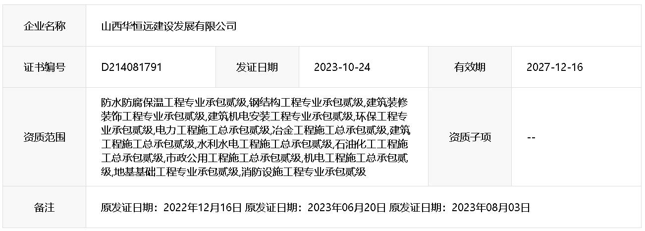 祝賀華恒遠(yuǎn)晉升水利水電施工總承包二級(jí)資質(zhì)