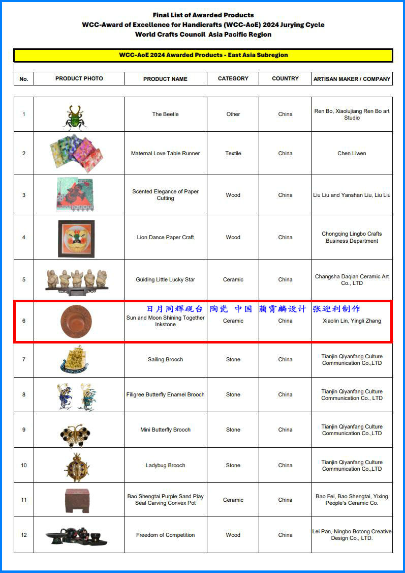 記者8月19日獲悉,由聯(lián)合國教科文組織與世界手工藝?yán)硎聲_展的“2024世界手工藝?yán)硎聲艹鍪止に嚻坊照抡J(rèn)證”評審結(jié)果于日前揭曉,新絳縣絳州澄泥硯研制所藺霄麟設(shè)計(jì)、張迎利制作的絳州澄泥硯——“日月同輝硯”,獲頒“世界杰出手工藝品徽章”,這是本次評審山西唯一獲獎作品。