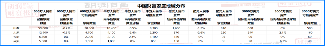 這是胡潤研究院連續(xù)第16年發(fā)布此報告,公布了全國擁有600萬元人民幣、千萬元人民幣、億元人民幣及3000萬美元以上總財富的家庭數(shù)量,以及相應的可投資資產(chǎn)家庭數(shù)量。此次報告涵蓋了包括港澳臺地區(qū)在內(nèi)的中國34個省級行政區(qū)共計108個城市,旨在全面揭示全國財富家庭的規(guī)模和分布變化。來源:太原日報