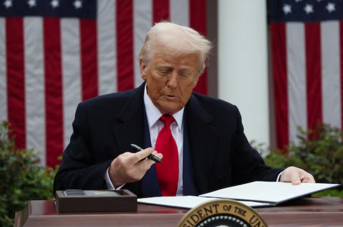 4月2日,特朗普簽署關(guān)稅行政命令。路透社