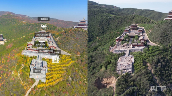左圖為太山博物館微信公眾號(hào)全景圖,右圖為記者4日航拍畫(huà)面(央廣網(wǎng)記者 張晉鵬 制圖)