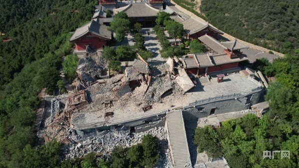 6月3日,太原市太山博物館發(fā)布閉館公告,稱(chēng)因近期發(fā)生地質(zhì)災(zāi)害,即日起將臨時(shí)閉館。4日,央廣網(wǎng)記者實(shí)地探訪(fǎng)事發(fā)地,航拍畫(huà)面顯示, 山上部分建筑坍塌嚴(yán)重,建筑外圍一處山體出現(xiàn)大坑,大量黃土裸露。