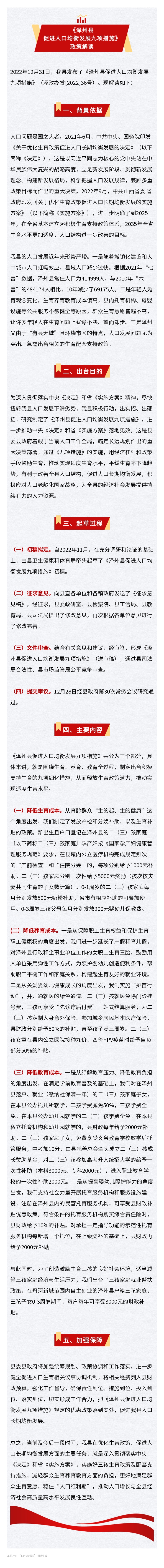 解讀文章稱,《澤州縣促進(jìn)人口均衡發(fā)展九項(xiàng)措施》是縣委縣政府著眼于當(dāng)前人口工作全局,瞄定長(zhǎng)遠(yuǎn)規(guī)劃作出的重大決策部署。通過《九項(xiàng)措施》的實(shí)施,用經(jīng)濟(jì)杠桿和政策手段鼓勵(lì)生育,推動(dòng)實(shí)現(xiàn)適度生育水平,平緩生育率下降趨勢(shì),有利于改善全縣人口結(jié)構(gòu),促進(jìn)人口長(zhǎng)期均衡發(fā)展,積極應(yīng)對(duì)人口老齡化國(guó)家戰(zhàn)略,為全縣的經(jīng)濟(jì)社會(huì)發(fā)展提供持續(xù)有力的人力資源。