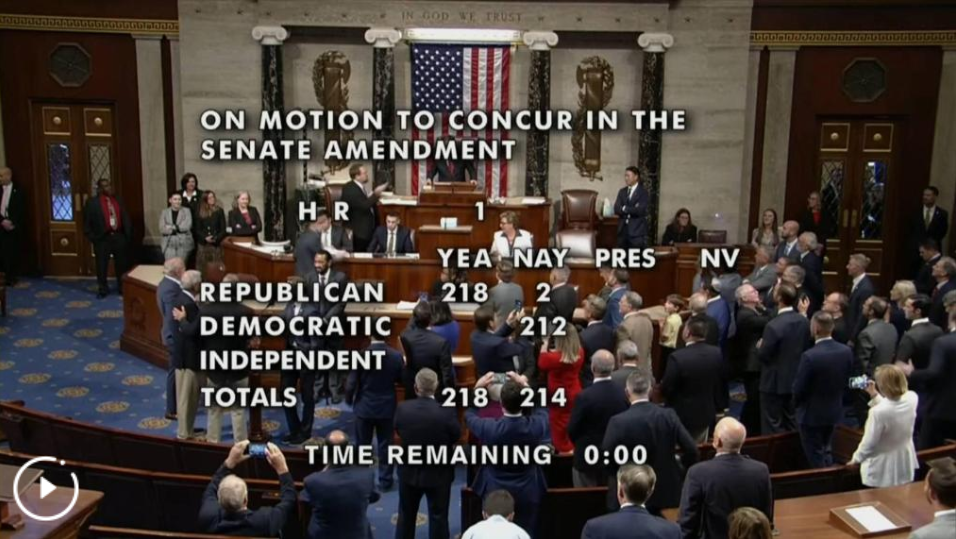 該法案因造成聯邦援助削減、長期債務增加和為富人及大企業(yè)減稅等而備受爭議。兩名共和黨籍眾議員當天在表決中投了反對票。