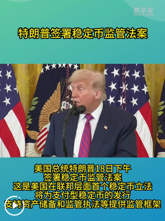 新華社紐約7月18日電(記者劉亞南)美國總統(tǒng)特朗普18日簽署穩(wěn)定幣監(jiān)管法案。這是美國在聯(lián)邦層面首個穩(wěn)定幣立法,將為支付型穩(wěn)定幣的發(fā)行、支持資產(chǎn)儲備和監(jiān)管執(zhí)法等提供監(jiān)管框架。