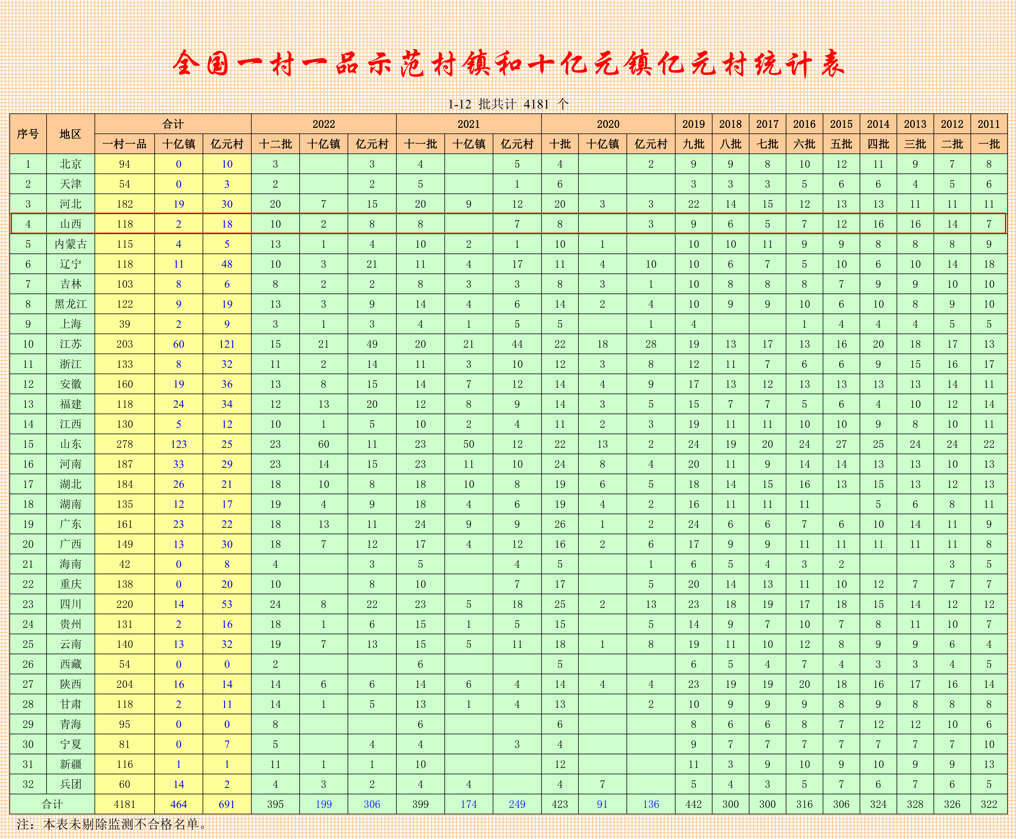 運城市臨猗縣廟上鄉(xiāng)(冬棗)、臨猗縣北辛鄉(xiāng)(蘋果)入選2022年全國鄉(xiāng)村特色產(chǎn)業(yè)產(chǎn)值超十億元鎮(zhèn)。2022年全國鄉(xiāng)村特色產(chǎn)業(yè)產(chǎn)值超億元村我省入選8個,分別為清徐縣孟封鎮(zhèn)楊房村(食醋)、陽泉市郊區(qū)平坦鎮(zhèn)桃林溝村(休閑旅游)、晉城市陽城縣北留鎮(zhèn)皇城村(休閑旅游)、朔州市懷仁市海北頭鄉(xiāng)海子村(肉羊)、朔州市懷仁市親和鄉(xiāng)南小寨村(羔羊)、晉中市祁縣趙鎮(zhèn)里村(肉牛)、呂梁市文水縣劉胡蘭鎮(zhèn)保賢村(肉牛)、呂梁市臨縣前安業(yè)鄉(xiāng)青塘村(粽子)。