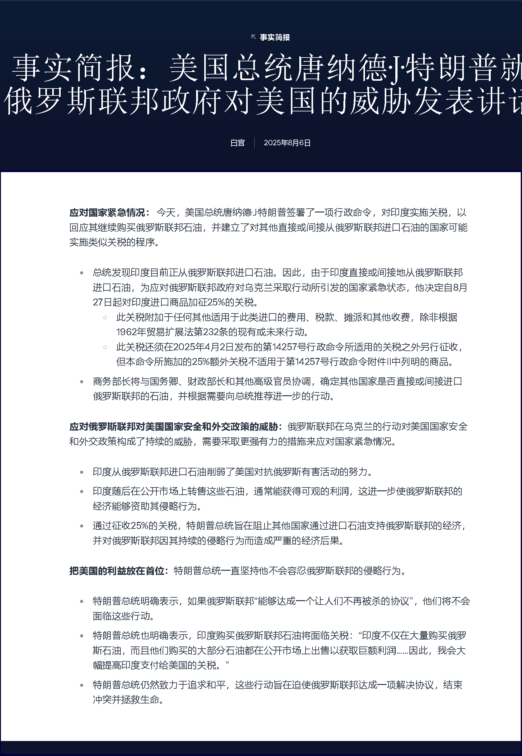 事實(shí)簡(jiǎn)報(bào):美國(guó)總統(tǒng)唐納德·J·特朗普就俄羅斯聯(lián)邦政府對(duì)美國(guó)的威脅發(fā)表講話