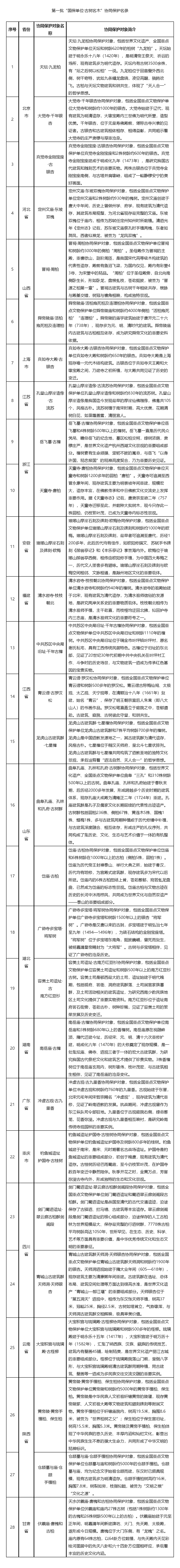 序號 省份 協(xié)同保護對象名稱 協(xié)同保護對象簡介
