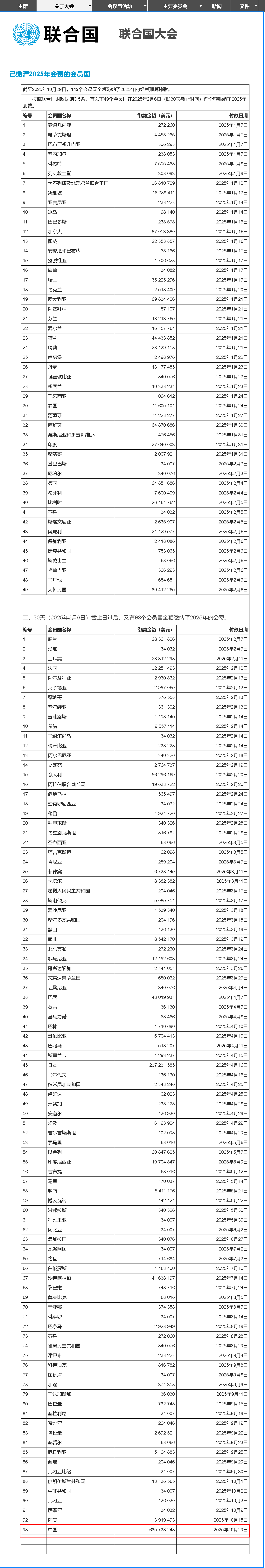 據(jù)聯(lián)合國(guó)介紹,中國(guó)是聯(lián)合國(guó)第二大會(huì)費(fèi)分?jǐn)倗?guó),所分?jǐn)偙阮~為20%,僅次于美國(guó)的22%,遠(yuǎn)高于排在第三的日本的6.93%。
