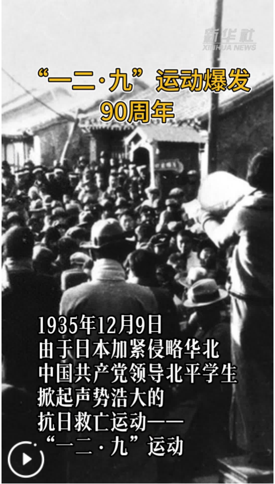 1935年12月9日,在中共北平臨時(shí)工委的領(lǐng)導(dǎo)下,多所高等院校和部分中學(xué)的數(shù)千名學(xué)生涌上北平街頭,舉行聲勢(shì)浩大的抗日救亡游行,“一二·九”運(yùn)動(dòng)爆發(fā)。