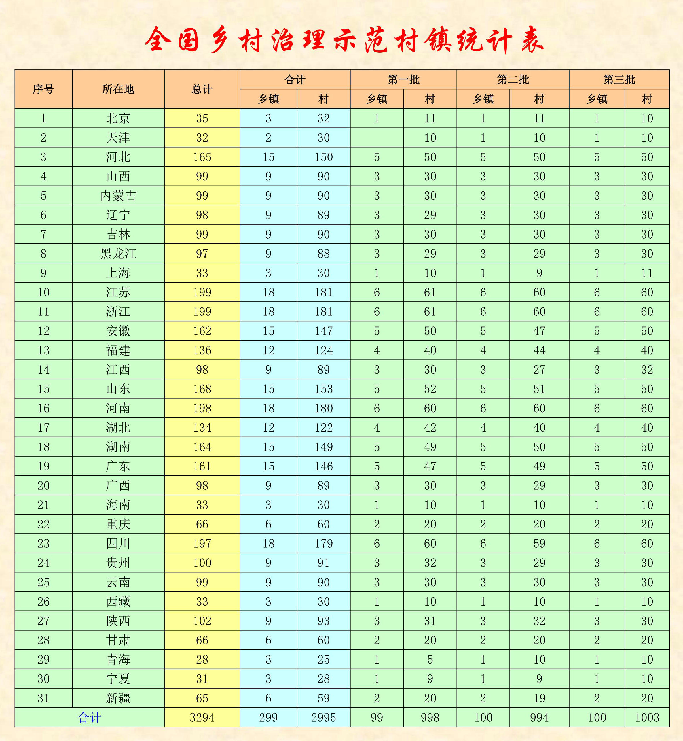 總序 示范鄉(xiāng)鎮(zhèn)村名稱 地區(qū) 類別 批次 年度 序號