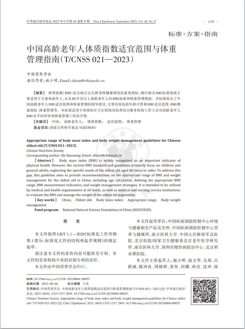 指南主要起草人之一、中國疾病預(yù)防控制中心副主任施小明在當(dāng)日由中國營養(yǎng)學(xué)會舉辦的新聞發(fā)布會上介紹,我國面臨人口老齡化、高齡化態(tài)勢,80歲及以上高齡老年人機體退行性變化導(dǎo)致低體重現(xiàn)象普遍,增加高齡老年人多種慢性病發(fā)病及死亡風(fēng)險。制定我國高齡老年人的BMI適宜范圍與體重管理標(biāo)準(zhǔn),不僅填補高齡老年人健康標(biāo)準(zhǔn)的空白,也為我國養(yǎng)老服務(wù)體系建設(shè)提供科學(xué)支撐。