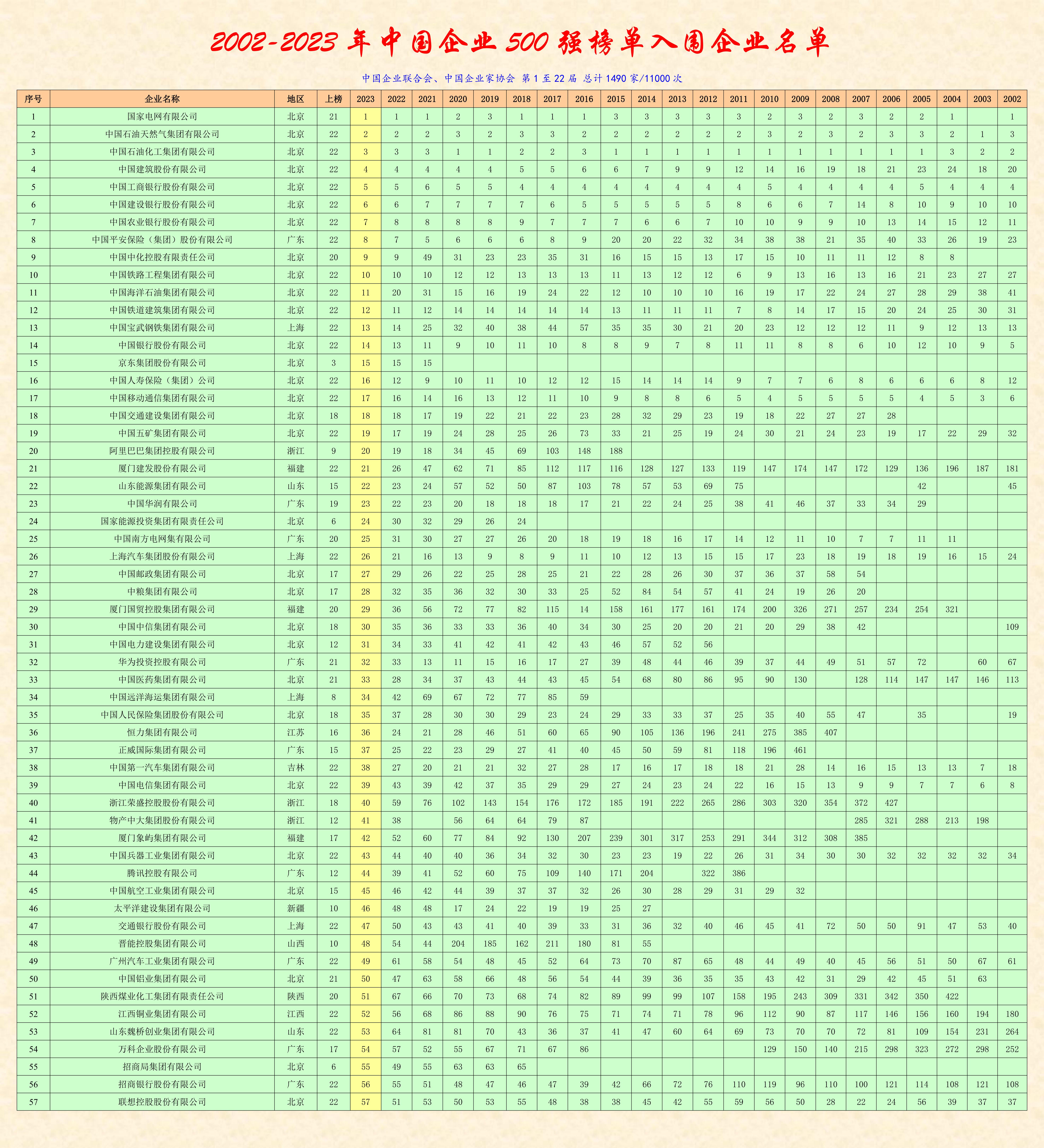 中國(guó)企業(yè)聯(lián)合會(huì)、中國(guó)企業(yè)家協(xié)會(huì)聯(lián)合發(fā)布2023中國(guó)企業(yè)500強(qiáng)榜單。榜單以企業(yè)2022年?duì)I業(yè)收入為入圍標(biāo)準(zhǔn),入圍門檻469.98億元,比2022年提高了23.73億元,已經(jīng)連續(xù)21年提高。2023中國(guó)企業(yè)500強(qiáng)營(yíng)業(yè)收入總額108.36萬(wàn)億元,比2022年的500強(qiáng)增加5.74%。千億級(jí)企業(yè)首次超過(guò)50%,有16家企業(yè)營(yíng)業(yè)收入超過(guò)1萬(wàn)億元。