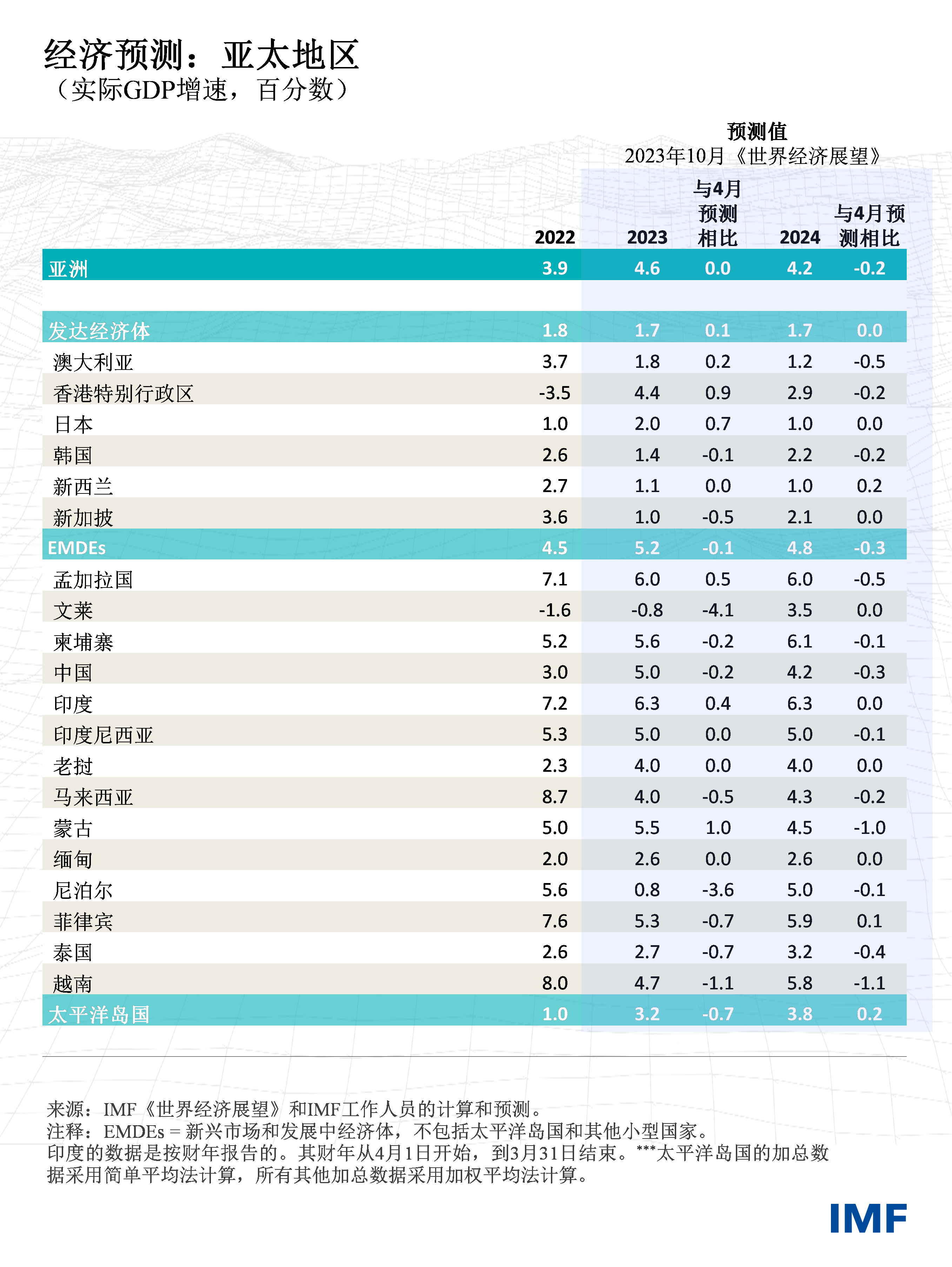 據(jù)報(bào)道,IMF發(fā)布的《亞太地區(qū)經(jīng)濟(jì)展望報(bào)告》預(yù)測(cè),2023年亞太地區(qū)有望對(duì)世界經(jīng)濟(jì)增長(zhǎng)作出約2/3的貢獻(xiàn)。亞洲開(kāi)發(fā)銀行前不久發(fā)布的《2023年亞洲發(fā)展展望》補(bǔ)充報(bào)告中預(yù)測(cè),亞太地區(qū)發(fā)展中經(jīng)濟(jì)體今年經(jīng)濟(jì)增速為4.7%。