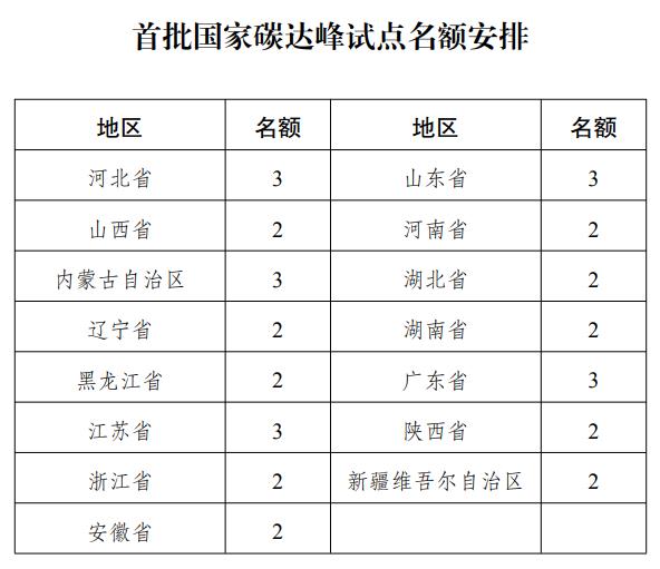 國家發(fā)展改革委有關(guān)負(fù)責(zé)人介紹,國家發(fā)展改革委將統(tǒng)籌考慮各地區(qū)碳排放總量及增長趨勢、經(jīng)濟(jì)社會發(fā)展情況等因素,首批在15個(gè)省區(qū)開展碳達(dá)峰試點(diǎn)建設(shè),由有關(guān)省區(qū)發(fā)展改革委提出建議名單,經(jīng)本地區(qū)人民政府同意后報(bào)國家發(fā)展改革委確認(rèn)。