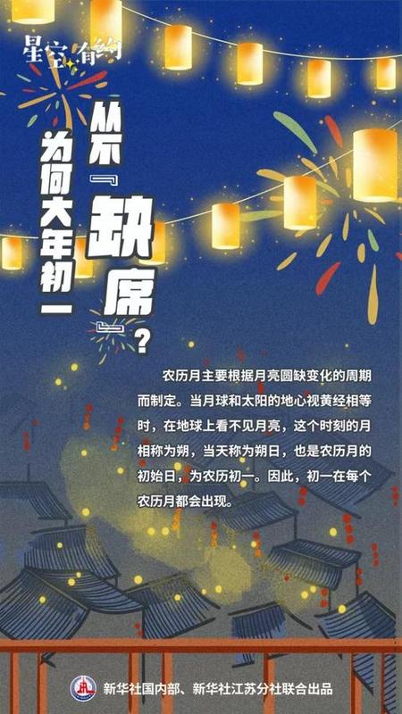 “出現(xiàn)這樣的情況,與我國(guó)農(nóng)歷歷算規(guī)則有關(guān)。我國(guó)農(nóng)歷歷法中,農(nóng)歷月主要是根據(jù)月亮圓缺變化的周期而制定。”中國(guó)科學(xué)院紫金山天文臺(tái)科普主管王科超說,月球繞地球轉(zhuǎn)動(dòng)一周的過程中,從地球上看,月亮呈現(xiàn)出不同相貌。當(dāng)月球和太陽(yáng)的地心視黃經(jīng)相等時(shí),在地球上看不見月亮,這個(gè)時(shí)刻的月相稱為朔,當(dāng)天稱為朔日,是每個(gè)農(nóng)歷月的初始日,稱為農(nóng)歷初一。因此,初一在每個(gè)農(nóng)歷月都會(huì)出現(xiàn)。