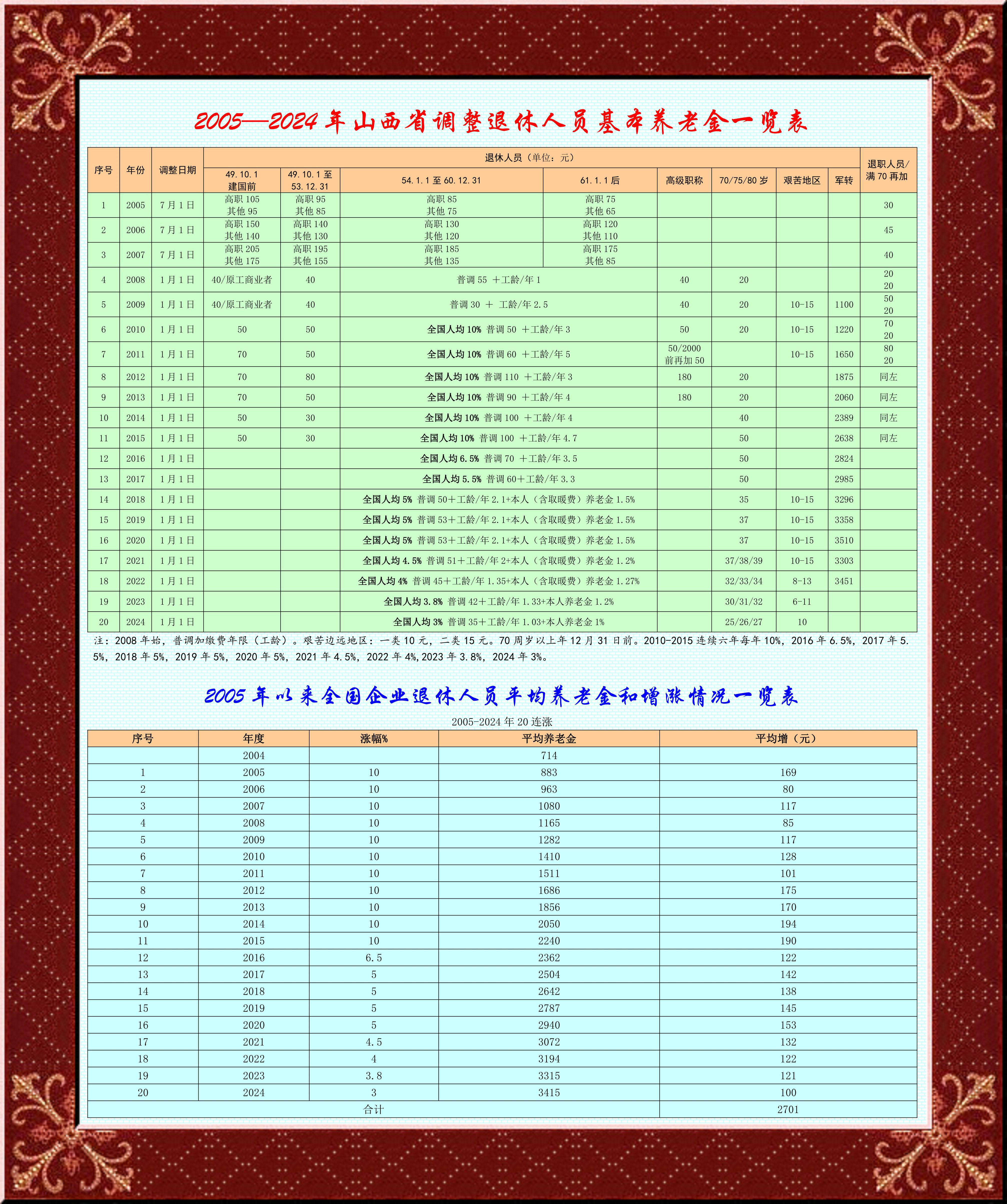 按照人力資源社會保障部、財政部《關于2024年調整退休人員基本養(yǎng)老金的通知》(人社部發(fā)〔2024〕48號)精神,經(jīng)省政府同意,并向人社部、財政部報備,從2024年1月1日起調整退休人員養(yǎng)老金水平,現(xiàn)將有關事項通知如下: