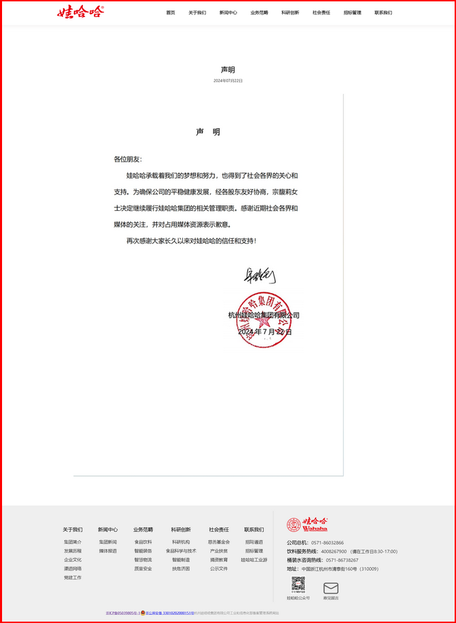 感悟娃哈哈正式聲明——當(dāng)以顧全大局為重