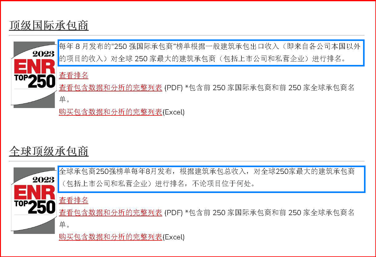 【行業(yè)資料】2023 年度 ENR 全球承包商 250 強和國際承包商250強中的中國內(nèi)地企業(yè)