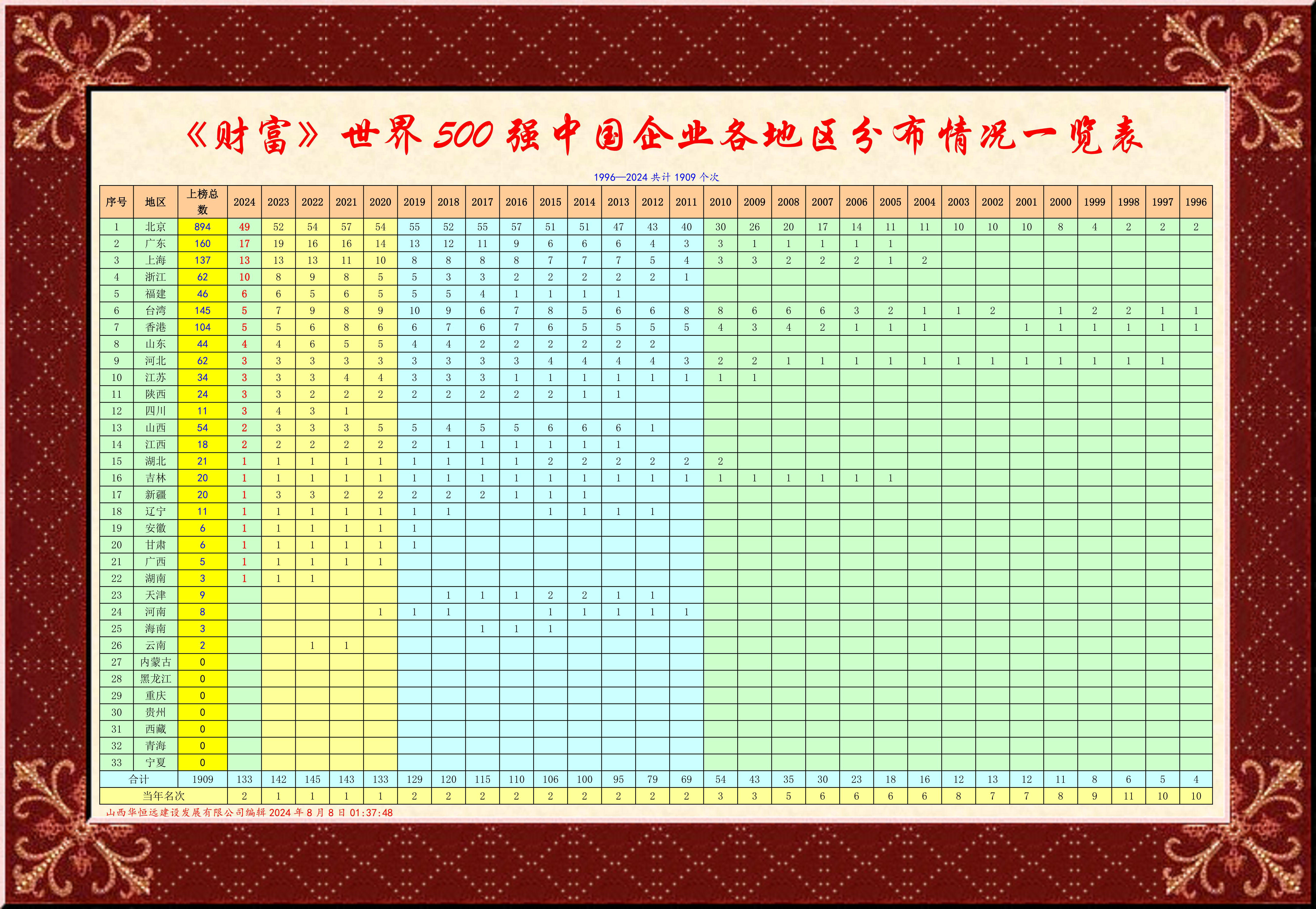 今年《財富》世界500強中國上榜企業(yè)133家,分布22個?。ㄊ校﹨^(qū),北京、廣東、上海位居前三,分別為49、17和13家。 浙江創(chuàng)十四年最好水平達到10家。