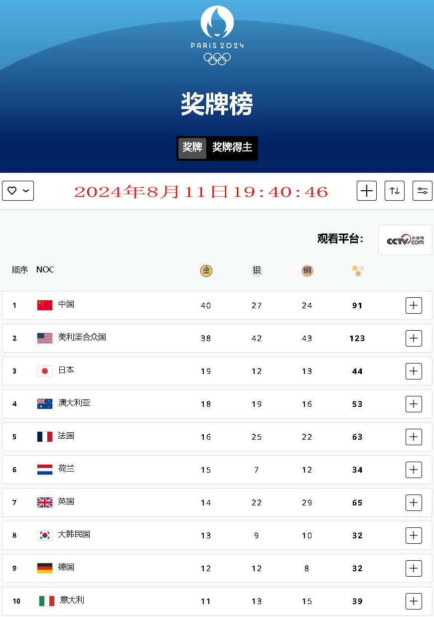 【學習園地】感悟巴黎奧運會——中國創(chuàng)造金牌榜