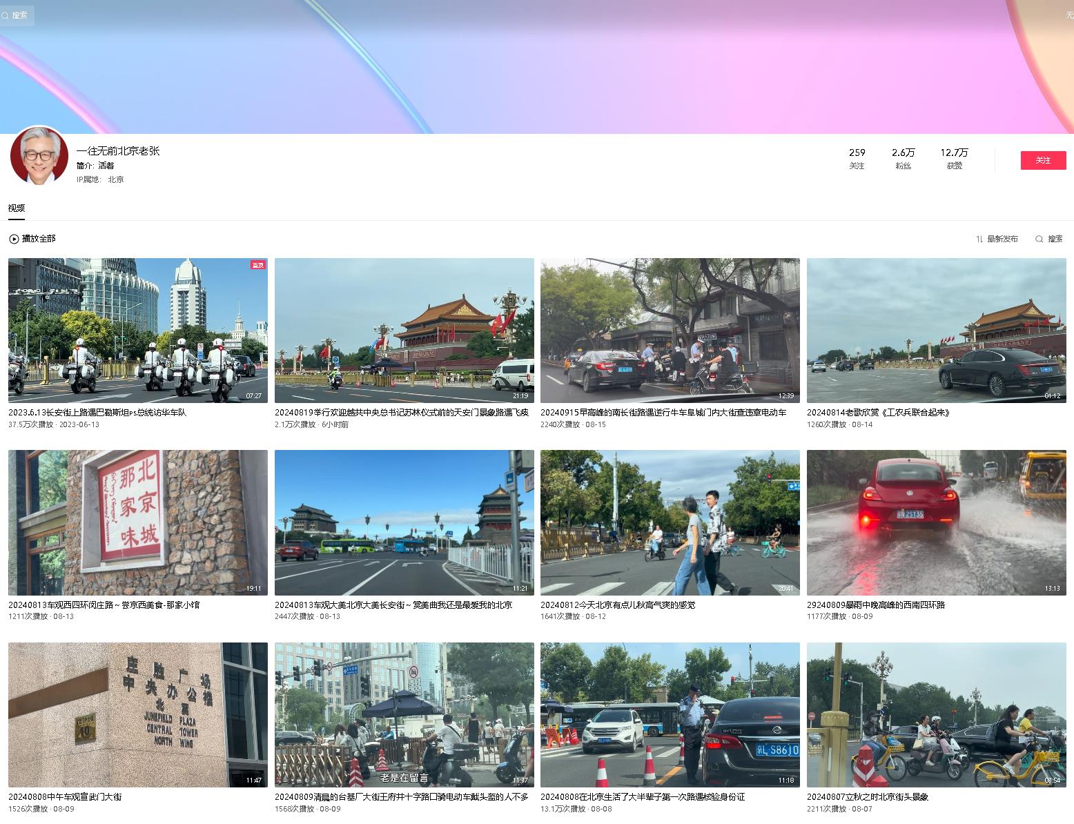 這位慈眉善目可愛的老張,看來是退休了。自己給自己找了一份工作,開車路拍首都北京街景。從2020年4月16日開始,到今天2024年8月19日,五年中1588天里拍了1489集。