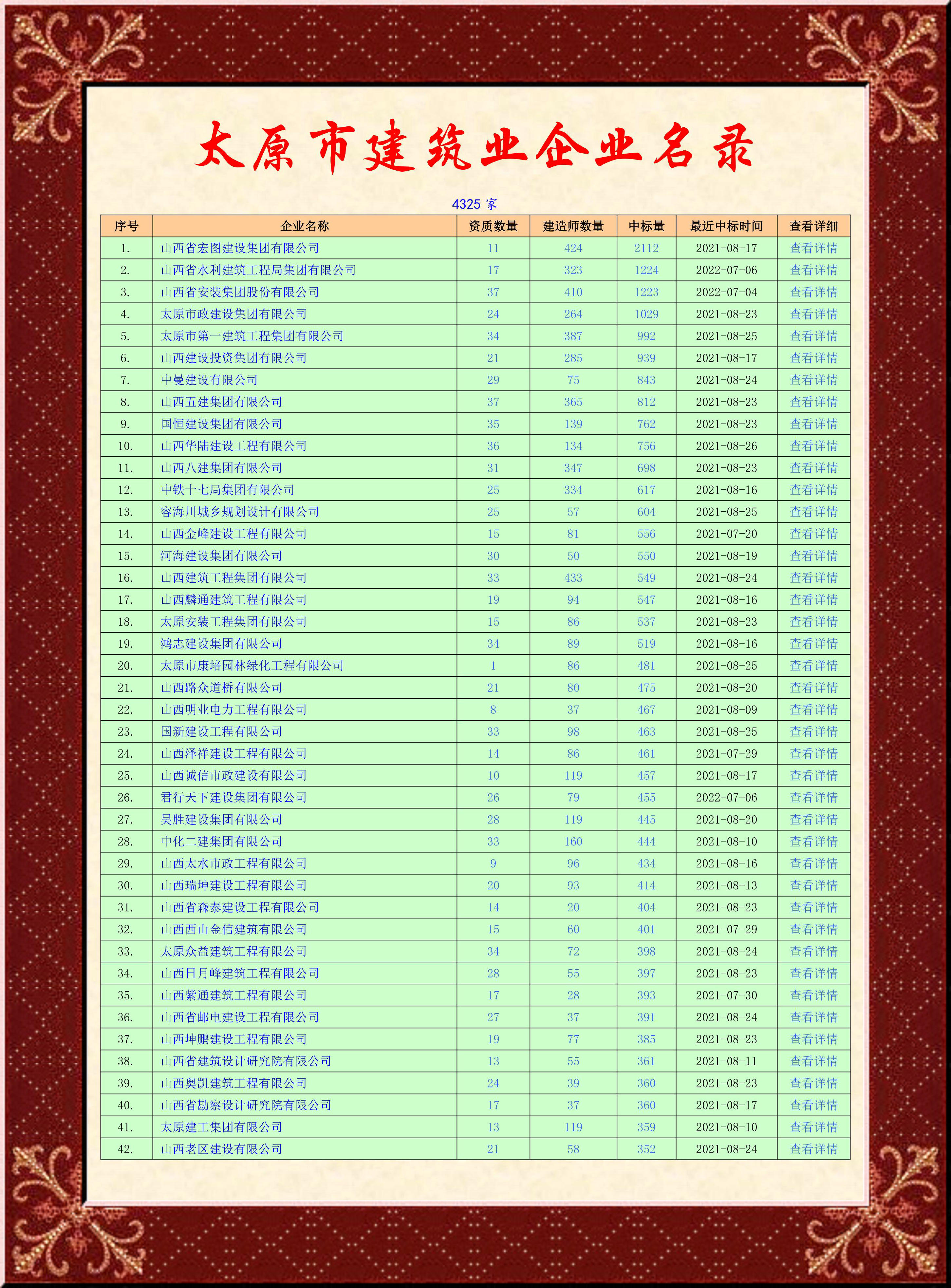 上午,編輯了太原市建筑業(yè)企業(yè)名錄,我們看看哪家企業(yè)發(fā)展最亮眼?