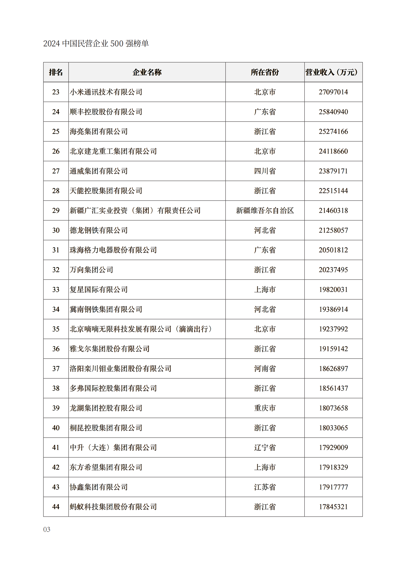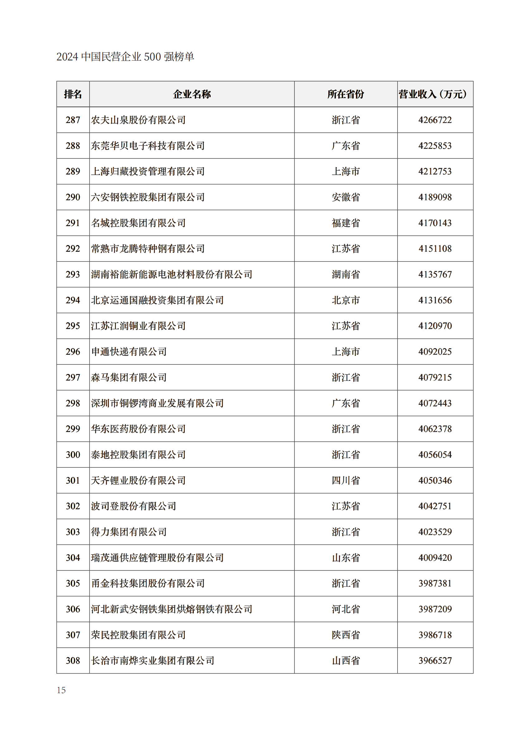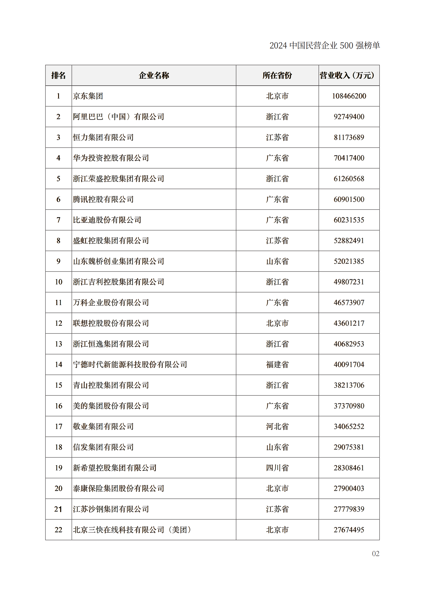 【行業(yè)動態(tài)】2024中國民營企業(yè)500強(qiáng) 制造業(yè)民營企業(yè)500強(qiáng) 服務(wù)業(yè)民營企業(yè)100強(qiáng)