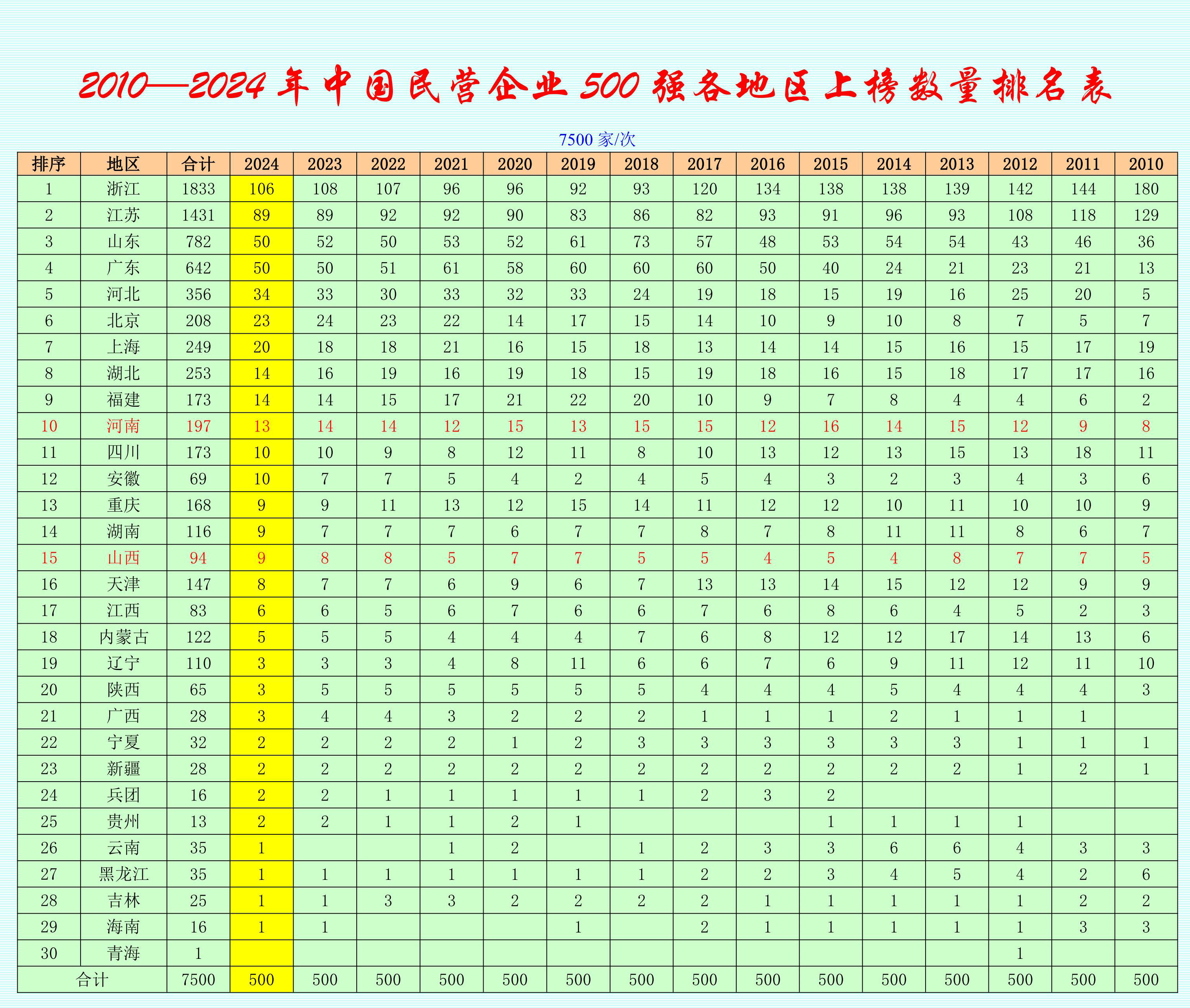 【學(xué)習(xí)園地】山西省上榜中國民營企業(yè)500強(qiáng)名錄