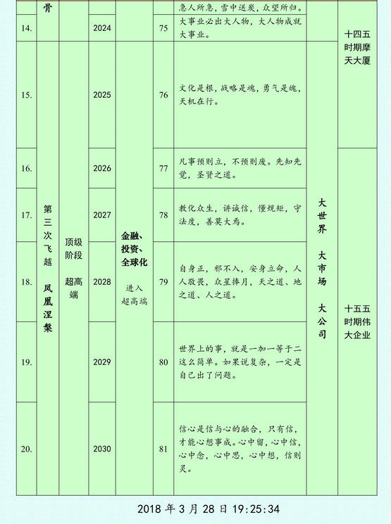山西二建發(fā)展戰(zhàn)略五年路線圖和時(shí)間表,從2011年到2020年,分兩個(gè)五年兩個(gè)階段規(guī)劃了十年的成就,是考慮現(xiàn)實(shí)和實(shí)際的可能性與變化的環(huán)境形成的階段性感悟程度。換言之,就看決策者的維度能否自覺(jué)接受并且堅(jiān)定不移去執(zhí)行!任何事物,懷疑或者遲滯,必將功虧一簣事倍功半!重回大道,二十年以后的事情了!