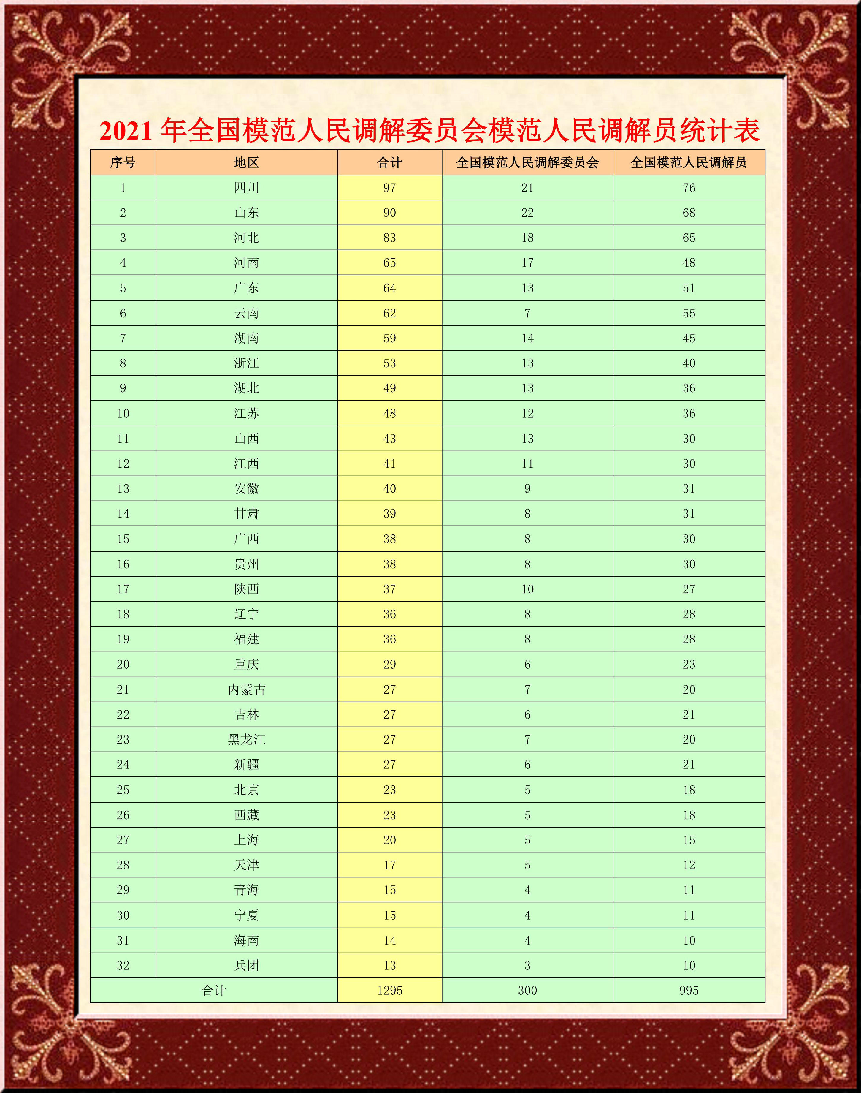 司法部關(guān)于表彰全國(guó)模范人民調(diào)解委員會(huì)模范人民調(diào)解員的決定