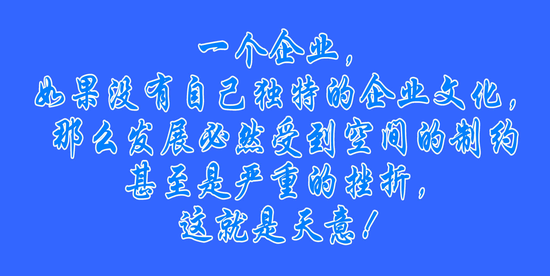 一個(gè)企業(yè),如果沒有自己獨(dú)特的企業(yè)文化,那么發(fā)展必然受到空間的制約甚至是嚴(yán)重的挫折,這就是天意!