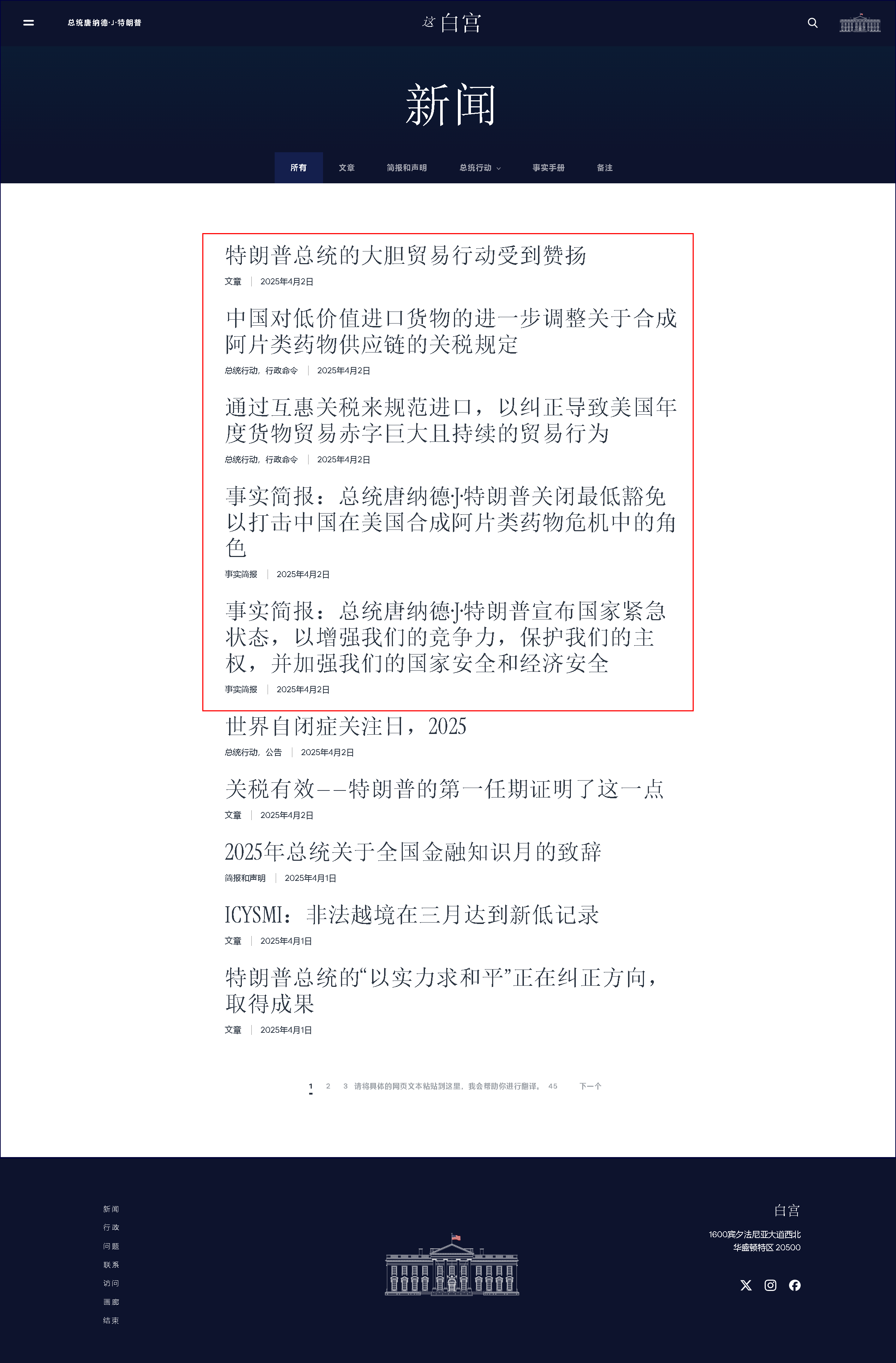 2025年1月20日,我簽署了《美國優(yōu)先貿(mào)易政策總統(tǒng)備忘錄》,指示我的政府調(diào)查我國商品年度貿(mào)易赤字巨大且持續(xù)的原因,包括這些赤字帶來的經(jīng)濟和國家安全影響及風(fēng)險,并對其他國家的任何不公平貿(mào)易做法進(jìn)行審查和識別。2025年2月13日,我簽署了《互惠貿(mào)易和關(guān)稅》的總統(tǒng)備忘錄,進(jìn)一步審查我國貿(mào)易伙伴的非互惠貿(mào)易做法,并指出非互惠做法與貿(mào)易赤字之間的關(guān)系。2025年4月1日,我收到了這些調(diào)查的最終結(jié)果,并根據(jù)這些結(jié)果采取了行動。