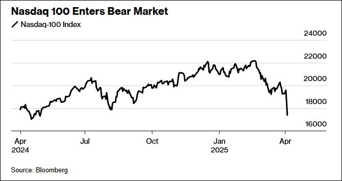 納指方面,與2月創(chuàng)下的高點(diǎn)相比,下跌幅度超過20%,符合進(jìn)入熊市的技術(shù)性標(biāo)準(zhǔn)。美國(guó)有線電視新聞網(wǎng)(CNN)稱,這是納指2022年以來首次收于熊市。彭博社觀察,納指自2月以來的下跌幅度速度,僅次于2020年疫情初期和2000年互聯(lián)網(wǎng)泡沫破裂時(shí)的市場(chǎng)表現(xiàn)。