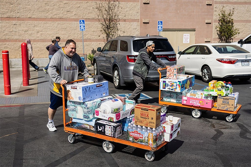 連日來,眾多美國民眾搶購和囤積日用品。 美媒